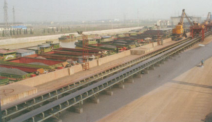 | 一:產(chǎn)品應(yīng)用范圍 廣泛應(yīng)用于冶金、煤炭、水電、機(jī)電、化工、交通等部門,輸送散狀物料或成件物品。根據(jù)輸送線路要求,可以單獨(dú)一臺,也可以多臺或與其它輸送機(jī)組成系統(tǒng)作水平或傾斜輸送。 輸送機(jī)一般環(huán)境溫度+45℃到-10℃范圍內(nèi)作用,對于有防塵、防爆、防腐蝕要求的場合需要輸送帶可逆運(yùn)行輸送時,應(yīng)另采取措施。 二、技術(shù)特征和主要參數(shù): 本機(jī)可輸送堆積比重1.0-2.5噸/米3的各種散狀物品,本廠生產(chǎn)帶寬500、650、880、1000等規(guī)格,傳動功率從1.5KW到185KW。帶速有0.8、1.0、1.25、1.65、2、0米/秒五種。大輸送量見下表。 三、結(jié)構(gòu)概述: 總機(jī)布置基本情況如附圖。主要結(jié)構(gòu)有: 1、驅(qū)動部分。系由裝置在型鋼焊成的底座上的電動機(jī)→高速聯(lián)軸器→減速器→減速聯(lián)軸組成。根據(jù)布置要求:驅(qū)動裝置設(shè)有左裝和右裝二種,另外,本廠配有功率1.5KW到185KW,速度0.80、1.0、1.25的油冷式電動滾筒。 2、滾動部分:分傳動滾筒和改向滾筒兩大類。 3、托輥部分:分槽形、平形、調(diào)心和緩沖托輥等。 4、清掃部分:分彈簧清掃器和空段清掃器 5、卸料部分:分固定犁式和卸料器和電動卸料車。 6、制動部分:有帶式逆止器和滾柱逆止器兩種。 7、附件:有罩殼、導(dǎo)料槽、漏斗等。