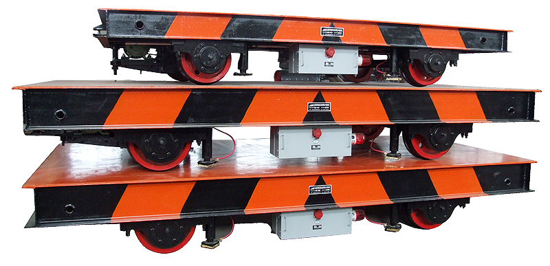 KP型卷線式電動(dòng)平車的供電方式為電纜線供車,并在平車上配有自動(dòng)卷(放)線裝置,一般情況下只能在直軌上行駛。